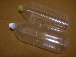 まずは2リットルペットボトルを二本用意します。実は、ここでのペットボトルの選択が、この飼育容器作製の最大の難関なのです。