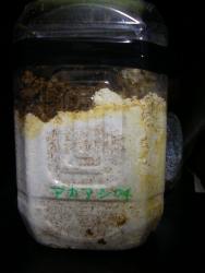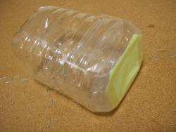 | マットと幼虫を入れたら、蓋をかぶせます。 そのあと、蓋をビニールテープでまいてしまいます。このとき蓋と本体の間の隙間を完全にふさぐようにぴったりと貼りつけます。隙間があるとコバエが出入りします。 安物ビニールテープを使うとすぐにはがれますのでご注意。 あとはラベルでも貼っておきましょう。 |