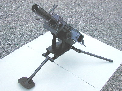 40mmモスカートにより、弾を発射することが出来ます。連発は出来ません。砲身は塩ビパイプの削り出し。設計ミスにより、各部に微妙なアレンジが入っています。3脚はかなり適当に作っています。