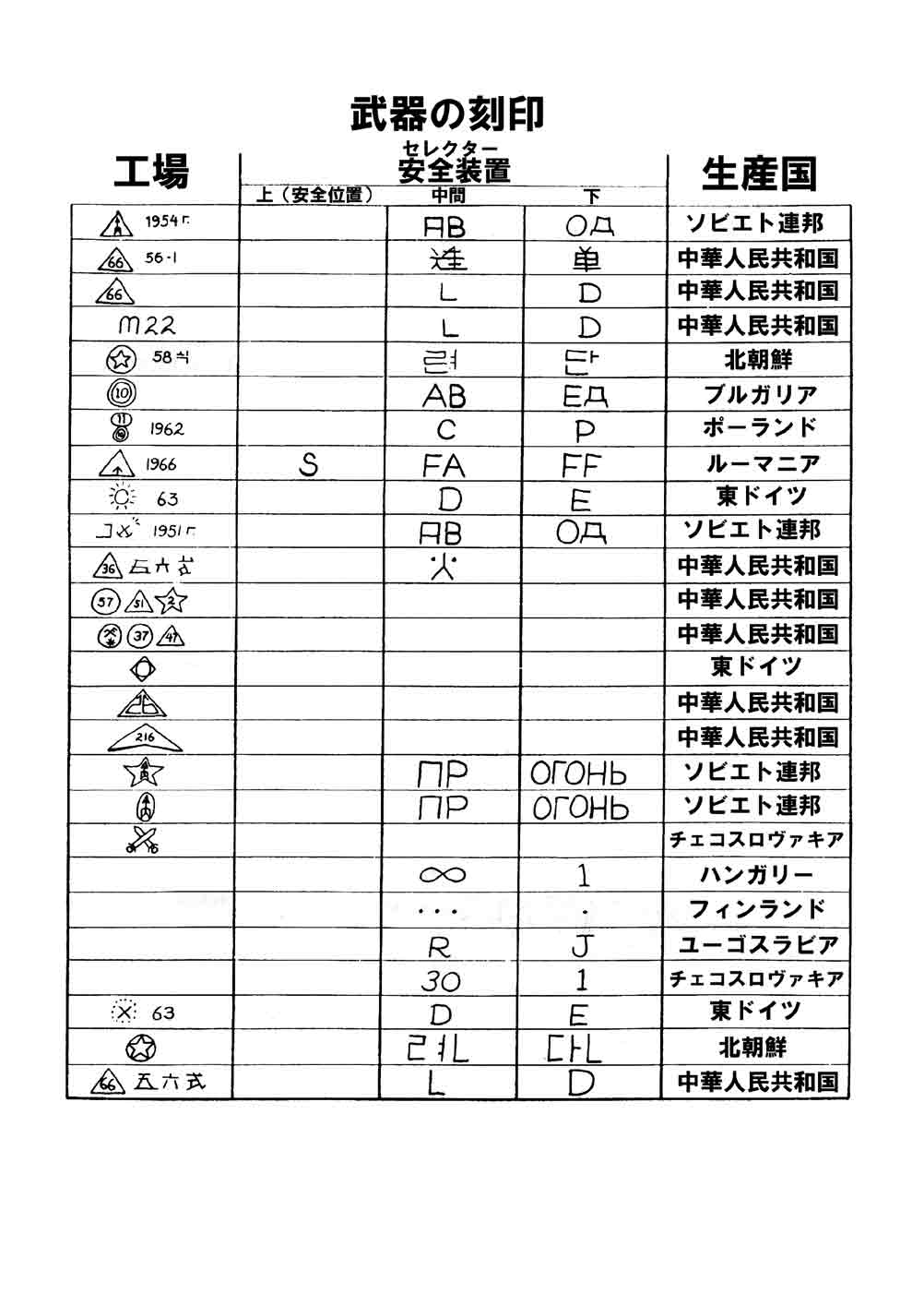 米軍の第203軍事情報大隊(OPFOR)が作成した実銃のAK-47の取扱説明書です。通常のメンテナンスから、付属品の使用法、弾薬などを網羅しています。用語は一般的なカタカナ表記と、自衛官向けの自衛隊用語の併記になっています。