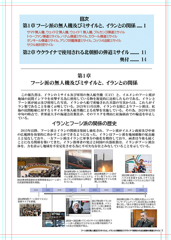 アメリカ国防情報局が作成したフーシ派と北朝鮮のミサイルなどに関する報告書を翻訳しました。今回はわかりやすくフルカラー本となります。