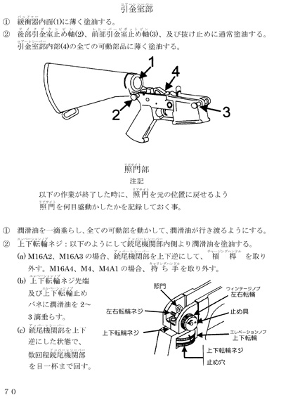 M4カービンだけではなく、M16A2〜A4の使用法、分解、清掃、メンテナンス、故障排除などの情報が記載されています。