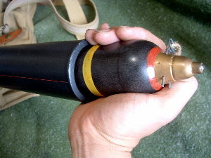 実物図面から製作して、実物を参考にし、究極を目指して作りました。89式重擲弾筒も前期と後期の区別だけではなく、各種のマイナーチェンジもあるので、前期型のひとつと考えたほうが良いかもしれません。革紐や外被にもこだわって生産しています。こんな事をするから赤字になるのだと言う意見もありますが(^^; |