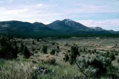 Pedio.simpsonii ssp.simpsonii (Whitepine Co, Nevada)月華玉 上記のコロニーの西隣りの山系にあるコロニー。5月下旬ですが、山並みには冠雪がみられます。この場所から少し標高があがると樹林帯となり、境界付近に月華玉がみられます。 |