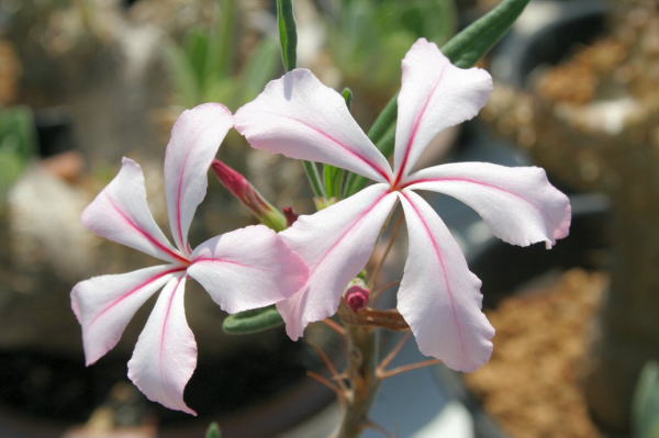 パキポディウム属は、塊茎多肉植物のなかでも、姿花とも素晴らしい特色を持つ一群です。多くはマダガスカルに産し、一部は南アフリカにも分布します。かつては山採り輸入球一辺倒でしたが、実はいずれの種も実生から美しく育てることが出来ます。私はこの類を15年くらい育てていますが、経験的にわかったことを以下、記します。
