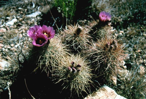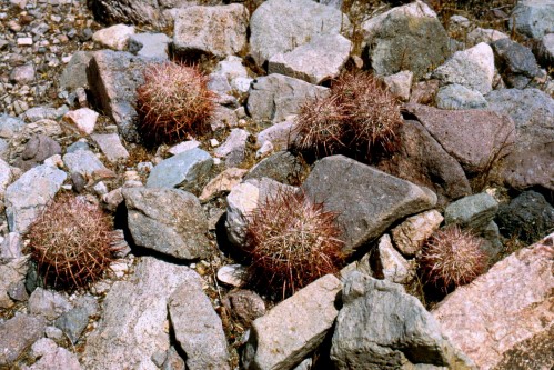 自生地はネバダ・ユタなどのモハヴェ砂漠、標高400〜1200メートルくらい。平原の枯れ川沿いや石のおおい斜面などを好むようで、日射のとても強い暑く乾いた場所に生えています。大竜冠、鯱頭、沙漠丸、アガベの青磁炉などとともにあります。