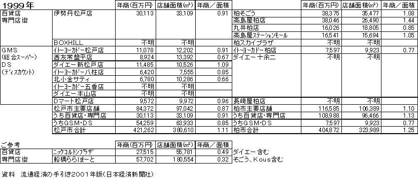 松戸と柏のデパート・GMS比較
