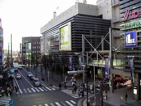 駅ビル(東急ショッピングスクエア南2号館)からの南1号館本館(奥)、別館(手前)の眺め。 南1号館はかつては東急百貨店が入っていましたが、採算面から撤退。 しかし、その後に入ったテナントと北館、南2号館との連携で賑わいが復活しました。