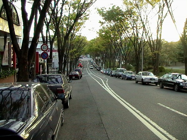 なんとなく常盤平の風景に似ているのは、公団施行であることと街路樹がケヤキだからでしょうか。 路上駐車はほとんど公園に遊びに来る家族連れのものです。 街中の大きな公園は、郊外に整備されたそれ以上の公園より、何倍もの威力を発揮します。 買い物ついでに家族で訪れたり、気分転換に家からちょいと散歩してみたり。 中に入らずとも、公園沿いの歩道を散歩するだけでも気持ちがよいものです。