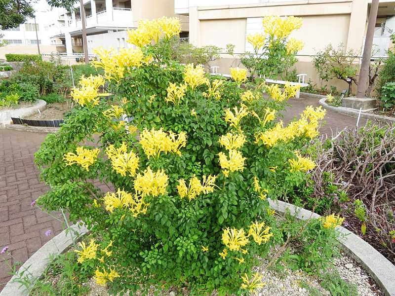 今日の画像は、黄色い花です。町内の歩道脇にある小さな広場に置かれている高さ1mほどの植木に黄色い花が咲いていました。ネットで調べたけど、花の種類は判りませんでした。花の部分を撮影した画像も紹介します。