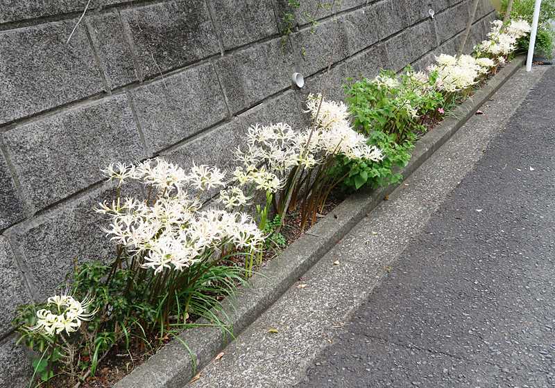 今日の画像は、白い彼岸花です。ショッピングで隣町にあるスーパーに行く途中、いつもは通らない道を歩いていたら、道の脇に一列に咲いていました。これだけの白い彼岸花を見るのは初めてでした。