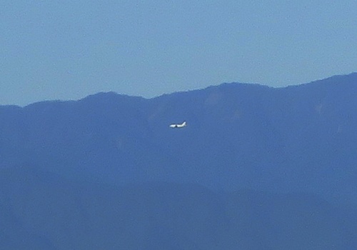 今日の画像は、丹沢山地の手前を通過する航空機です。昨日、富士山を撮影した時に、丹沢山地も含めた広角画像を撮影しました。その画像を確認したら中型の航空機が写っていました。丹沢山地の標高は、1500m以上なので、かなり低い高度を飛んでいることになります。どこからどこに飛んでいるのかな?