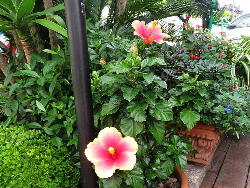 今日の画像は、ハイビスカスです。我がの家近くにあり、行き付けの床屋さんの入口近くに植えられている花です。床屋のご主人は草花を育てるのが趣味で、店の周りや屋上は鉢植えの花が一杯です。