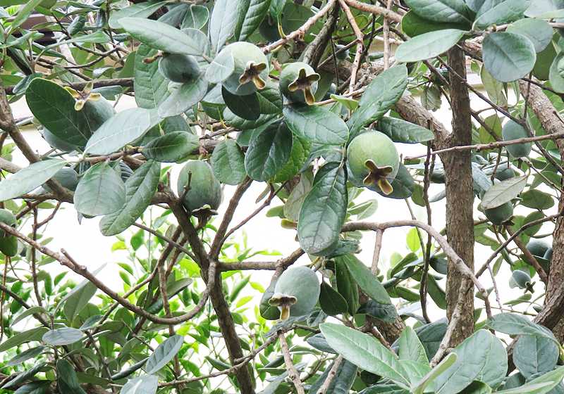 今日の画像は、フェイジョアの実です。白くて面白い花を咲かせるフェイジョア、その実も面白い形です。