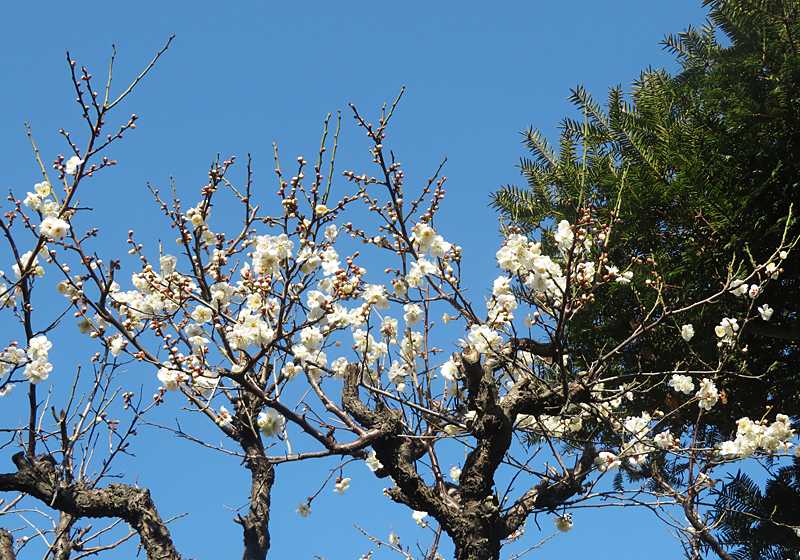 今日の画像は、白梅です。ご近所の庭の白梅が咲いていました。先週の土曜日に撮影しました。澄んだ冬の青空をバックに目に鮮やかでした。
