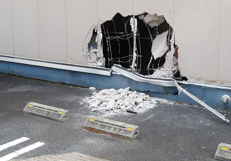 今日の画像は、スーパーの駐車場の壁に開いた穴です。ランチの帰りに日々買い物をしているスーパーに立ち寄りました。駐車場の3階に車をバックで止めたら、向かいの壁の上部にぽっかり穴が開いており、その穴の下の駐車スペースには瓦礫の山ができていました。