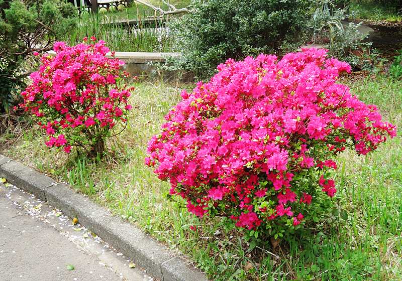 今日の画像は、ツツジです。勤務校の正門奥、昨日のドーダンツツジの横に植えられているツツジが満開です。ドーダンツツジの白い花の色との対比が美しい雰囲気です。