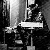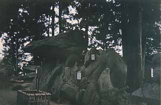 阿武隈川に沿って北上し現在の福島県二本松市付近、安達ヶ原(あだちがはら)は鬼婆伝説の地。奥州路もこの辺まで来ると、いよいよ出会う人も稀となり・・・、ということでこんな伝説が生まれたのでしょうか。左は能「黒塚」より、老女が糸繰り車を回しながら世のはかなさを嘆く場面
