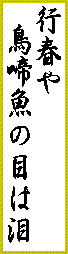 - 暮れて行く春に(に自分も旅立ってゆく)。(その悲しさに)鳥も鳴き、魚も目に涙があふれていることよ。