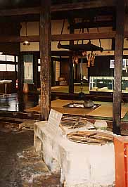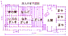なかをのぞくと雪深い地らしく、主屋の内に馬を繋いでおく「まや」(平面図で見て右側)があります。芭蕉は馬と寝食を共にする(?)はめになってしまいました・・。やはり鳴子の温泉で一泊すればよかったのにね。