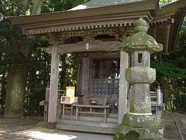 小高い山を登った上に右写真、義経堂が。堂内には木製の義経像が祀られています。