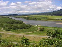 かつてはこの川の辺に、人口15万とも言われる陸奥(みちのく)最大の都市が開けていましたが、源頼朝の奥州攻めに遭い、都市は壊滅。そんな昔話を知ってか知らずか、北上川は悠々と陸奥の平原を流れています。