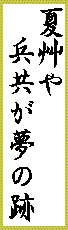 (今こうして高館に立ってみると、目の前には)夏草が生い茂っているなあ。(ここはかつて義経以下の)兵士たちが功名を夢みて奮戦した跡なのだ(しかし、その功名も虚しく一場の夢と消え去り、草ぼうぼうたる廃墟と化している)。