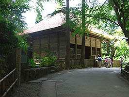 金色堂が建てられてから五十年ほどしてこの貴重な金の御堂の腐朽を防ぐため簡素な覆いが造られ、室町時代中期頃には旧覆堂(右写真)の姿が整えられたと思われるとのこと。