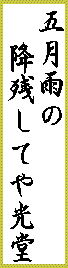 - (あの、すべてを朽ち腐らせてしまうと言われる)五月雨もこの光堂だけには降らなかったのであろうか(今もその名のように光り輝いている)。