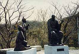 写真は記念館前に建つ、子どもたちと遊ぶ良寛さんの像。
