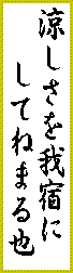 - 涼しさを我が家にいるような気分で(くつろぎながら)座っていることであるよ。