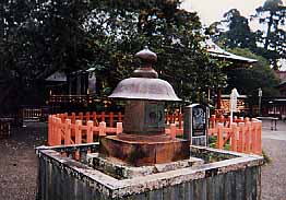 神前に古き宝燈(ほうとう)有り。かねの扉のおもてに「文治三年、和泉の三郎寄進」と有り
