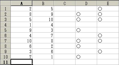 使用例2 セル範囲 A1:B10 における数値データの中で、5 以上であれば 右2列隣りに ○印 をつける。 Sub statmen2() Dim erng, rang As Range Set rang = Range("A1:B10") For Each erng In rang If erng.Value >= 5 Then erng.Offset(, 3).Value = "○" End If Next End Sub back top