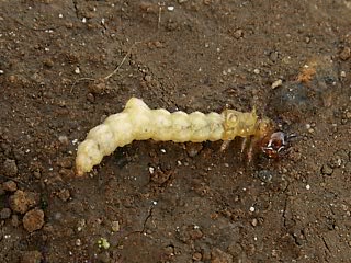 ハンミョウの幼虫は,固い土の地面に小さな巣穴を掘って,その中で,地面を歩いている虫を待ち伏せしているのです。天気の良い日には,穴の入り口に顔を出している幼虫も見られます。彼らは動くものにはけっこう反応してしまうので,顔を出しているハンミョウの幼虫を見つけたら,草などを近くで動かしてみると,飛びついてくることがあります。ルアーフィッシングみたいですね(笑)。