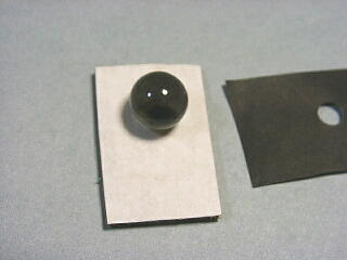 これにビーだまをのっけると,穴のむこうがわまで,ちょうど2mmぐらいになるので,観察したいものをダンボールにぴったりとくっつければ,ピントが合うわけ。黒いのは,ビーだまをおさえるための紙。