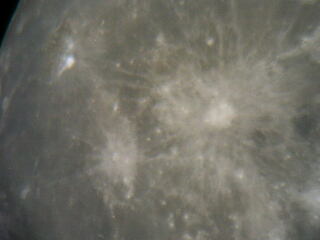 しかし,満月前後になると目立つクレーターもあります。クレーターに正面から光が当たるようになると,クレーターのまわりに放射状の光の筋(光条といいます)が目立ってくるものがあります。光条は,光が斜めに当たるときには,はっきり見えません。満月の前後は,光条の観測に適しています。