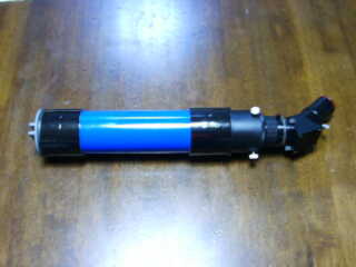 地上観察仕様との外観上の差は,ほとんどありません。もともとVU50管のジョイントですから,地上用←→天体用の交換も容易。……接眼部を接着しないでよかった……。天体用のユニットなら,地上プリズムによる視野の制約もありませんから,広角型のアイピースも取り付けられるかも知れません。