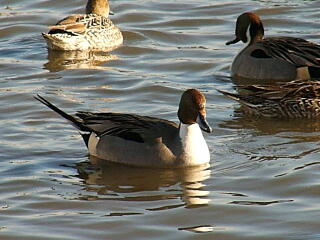 オナガガモ。餌を撒くといちばん先に人に慣れてしまうカモです。このカモが増えると,コガモが追い出されてしまったりするんで,人があんまりカモの生態を変えてしまわないようにしたいので,私はあんまり餌付けを好みません。