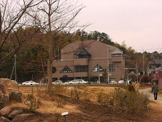 水の館のすぐ左,少し木に隠れている建物が,我孫子市鳥の博物館。