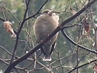 太いくちばしと鋭い声。スズメよりちょっと大きめで太め。