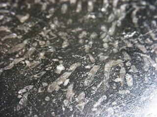 これはちょっと珍しい,ナガレサンゴの化石。 (撮影地:上野) |
