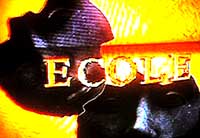 2枚の無表情なデスマスク・・怪しいBGM・・うねうね飛んでくる薄汚いエコールのつづり・・・ 「勘弁してください」って感じですが、会社ロゴは飛ばせません、そんなことに気を使っている