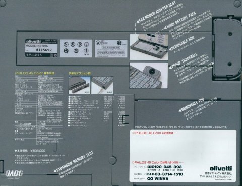 | プレインストール ・ソフト | MS-DOS 5.0 | MS-DOS 6.2/V | 日本語MS Windows 3.1 | Lotus Organizer for Olivetti | Lotus Organizer R1.1J | Online User, DOS and Windows manuals | DOS/Windows オンラインヘルプ | Voice Recorder | --- | Windows Sound System Ver.2.0 |