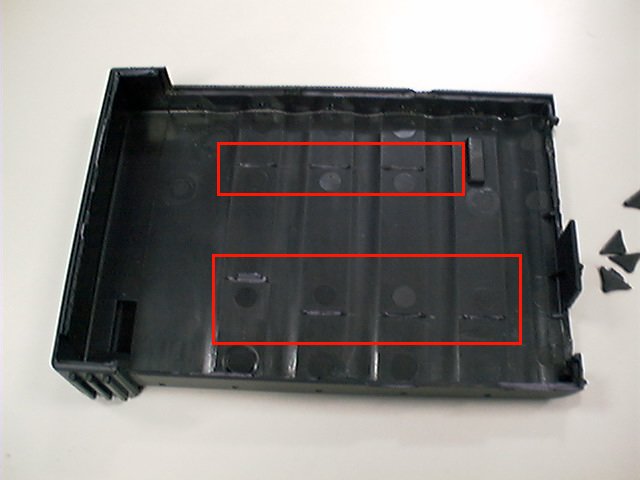 これで、電池ケースを内蔵してもバッテリーケースが閉じられるようになりました。 |