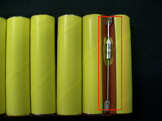 - また、温度センサがバッテリーの高温状態を検知すると充電する側に知らせて充電をストップさせるのですが、ストップされなかった場合のために温度ヒューズがあります。