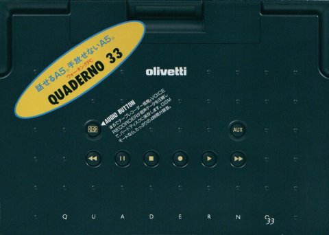 前期モデルを「QUADERNO33/E」,後期モデルを「QUADERNO33/J」と呼んで区別しています(日本オリベッティのカタログ表記に準じる)が、ハードウェアは同じモノです。