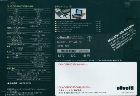 なお、両モデル共、プリインストールされたMS-Windows 3.1は英語版でしたが、「QUADERNO33/J」では「Win/V」と言う日本語表示ドライバーで日本語の使用を可能にしていました。