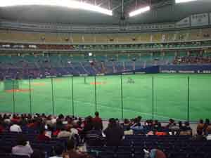 左:いつもいるレフトスタンドはこんな感じです。 右:やはり外野よりは見やすいです。 左:手前まで接近するとこんな感じ(ナゴヤ球場より高いことがよくわかります) 右:レンズをさらに近づけるも、高橋はまだ小さく見えます ライトポール 戻る