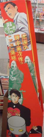 クロマティ高校が大当たりしたため、急遽出版社(取次ぎ?)が作った、 野中先生の作品を陳列するための棚です(段ボール製)