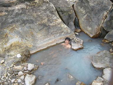 インプレッション 泉温38℃ 湯はややすっぱいが、ピリピリする程では無い。 湯温もちょうど良い。う〜っ、こりゃ天国だ。 ←他にもいろんな場所が湯船になっている。 湯めぐりの途中だったのだが、他の温泉はどうでもいいという気分になるほどの心地良さ。